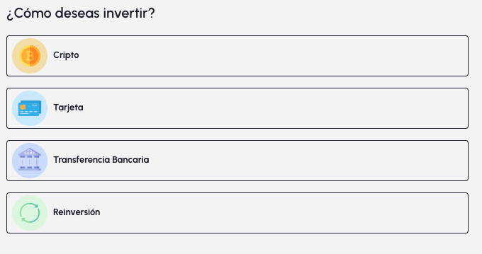 Esta guía explica las formas de invertir en un proyecto dentro de Crowmie. Cada método tiene requisitos y flujos de cobro distintos. Elige el que mejor encaje con tu configuración de inversión y con el saldo que tengas disponible.